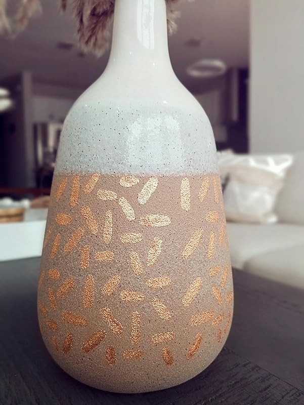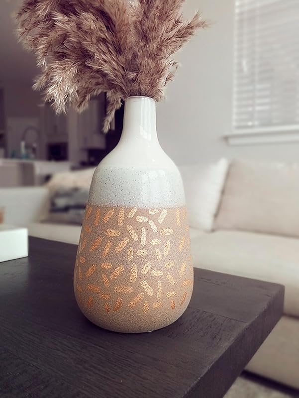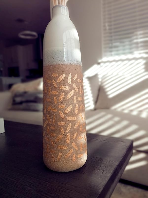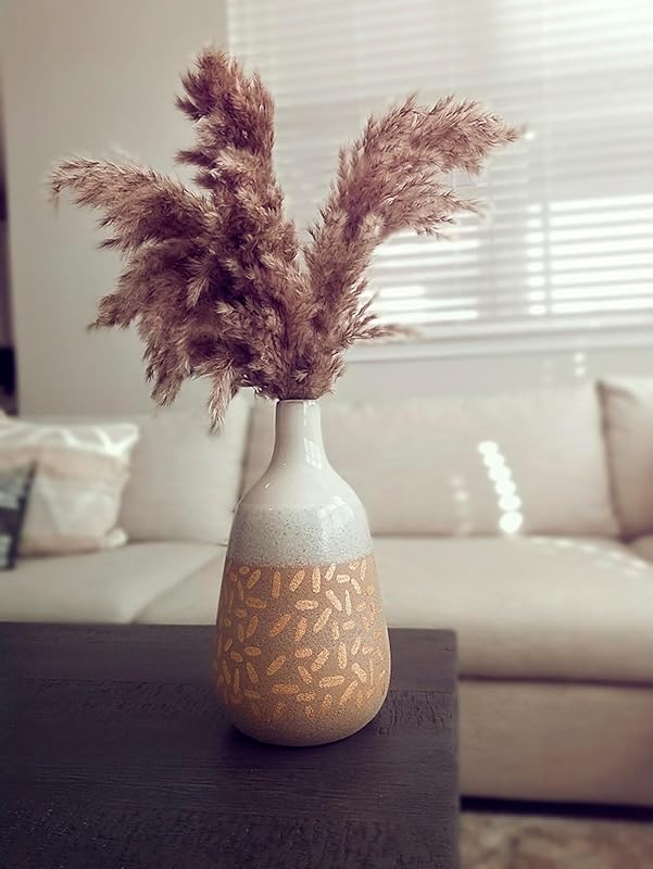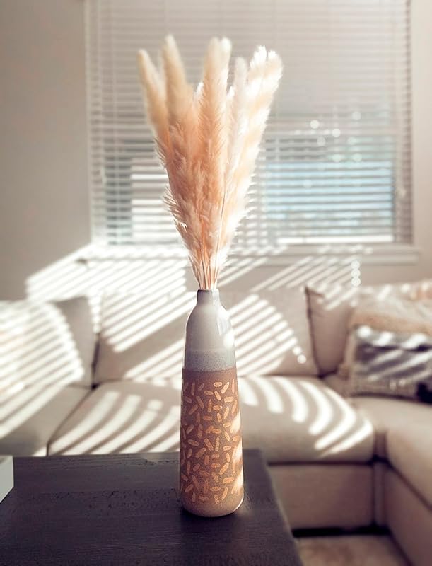 i was iffy about purchasing this vase because of the price, but i had an amazon gift card and i had been eyeing it on my wishlist for months so i finally pulled the trigger and i’m so glad i did! it looks great in my family room with some pampas grass in it! you can tell that it is high quality.
