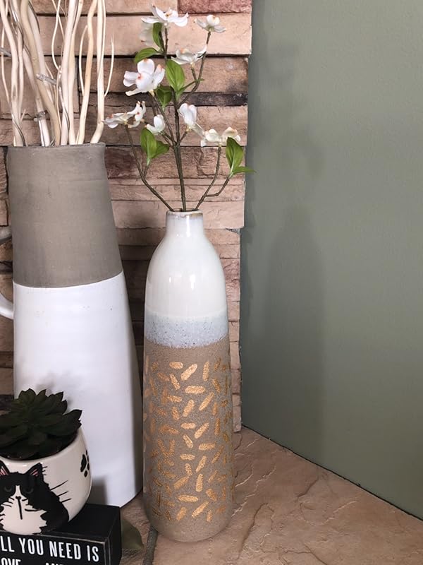 This Main + Mesa stoneware vase adds elegance and a nice touch of glamour to my dresser decor without being gaudy. The gold flecks complement my bedroom’s color scheme nicely, It is very sturdy and is exactly what I was looking for. Love it.