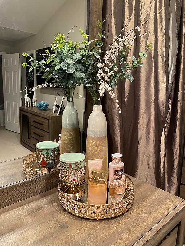 These vases are made very well. The gold spots on the vases are like a gold foil so it’s very shiny especially in certain lighting. The vases also have a few small circular sponges on the bottom so that it stays put. For the price, it’s definitely worth it. So far I have purchased the 14″ vase, 10″ vase, the 8 mini vases, and just bought the 9″ vase (which hasn’t arrived yet and will update my review when I get it) and can say that I am 100% satisfied. One of the best purchases I’ve made on Amazon.